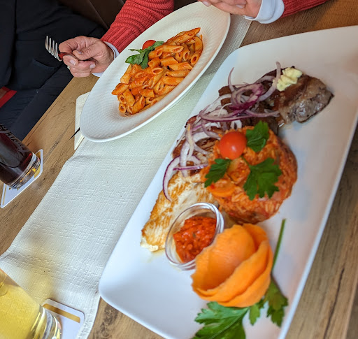 Zur Vorspeise wählten wir die Flädlesuppe und Bruschetta. Die Flädlesuppe war köstlich und herzhaft, genau das Richtige, um den Appetit anzuregen. Die Bruschetta war frisch und knackig, mit einer schönen Kombination aus Tomaten, Knoblauch und Basilikum – perfekt gewürzt.