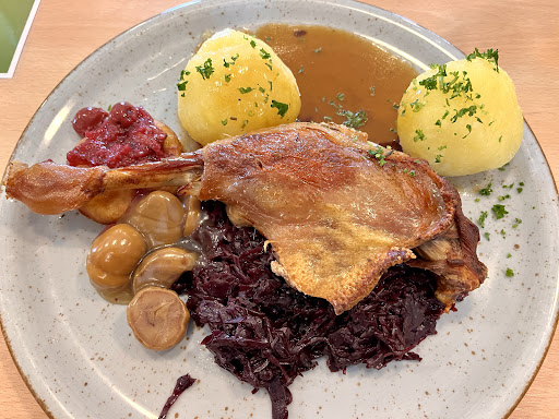 Located on a hill right next to a soccer field you can find this beautiful rustic restaurant. You can find some traditional german foods like Schnitzel with Spätzle here as well as a wide variety of seasonal dishes like pumpkin dishes.