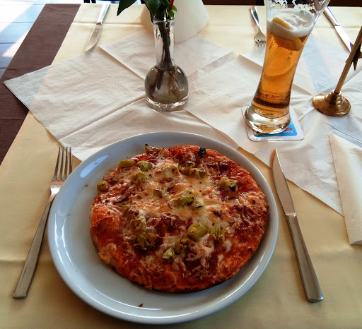 Update vom April 2019 Das Personal ist sehr nett. Vor dem Restaurant gibt es einen schönen Biergarten, wo man nett draußen sitzen kann. Das Lokal hat ein nettes Ambiente. Es gibt eine große Fensterfront, daher ist es schön hell mit einem schönen Blick auf die Natur. Die Karte hat einen guten Umfang und die Preise sind recht günstig. Meine kleine Pizza mit Sonderwünschen war nach 10 Minuten da und sehr gut. Der Teig war locker und trotzdem knusprig. Die Pizza war gut belegt und hat sehr gut geschmeckt. Nach dem Essen gab es noch einen kostenlosen Schnaps aufs Haus. Immer...
