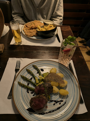 Read moreWir waren auf Empfehlung heute das erste Mal hier und sind begeistert. Wir bekamen einen Tisch auf der sehr schönen und großzügigen Terrasse mit sehr viel Grün. Es gab vorab Brot mit leckeren Aufstrichen. 🍞 Mein Mann konnte sich bei der sehr gut aufgestellten tagesaktuellen Karte schwer entscheiden, nahm dann das Schnitzel mit Steinpilzen🍄. Und war begeistert: Sehr zartes gutes Fleisch🐷, viele Pilze in viel Soße mit leckeren Bratkartoffeln. Bei mir ist es schwierig, da ich kein Weizen, kein Fleisch und keine Kuhmilch🐄 vertrage und esse. Der junge, sehr freundliche und aufmerksame Kellner 🧍🏽♂️nahm meine Punkte auf und besprach sich mit Denis, der Küche. Mir wurde Schwertfisch vorgeschlagen und den nahm ich. Ich bekam eine große Platte mit Gemüse und ein Schwertfischsteak (?), wunderbar, genau mein Geschmack. Das Gemüse knackig, der Fisch perfekt. 🐟 Die Getränke alle entsprechend kühl. Der Service ist aufmerksam und zuvorkommend, vielen Dank.