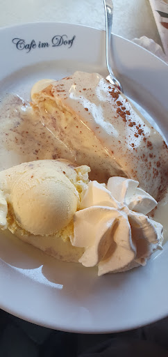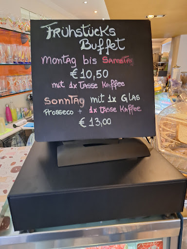 We live in Alkenrath and we walk over to Schlebusch quite frequently with our trusty dog, Bero. We often stop by here for something to drink or a bit to eat. Today the four of us in the family found one of the remaining seats outside and settled down. A bright young lady was soon with us to take our order - Apfelstrüdel, ice coffees etc. She also brought Bero a welcoming bowl of water (still, not sprüdel) as he was dying of thirst. All good. Oh, and the restrooms at the back of this establishment are clean...