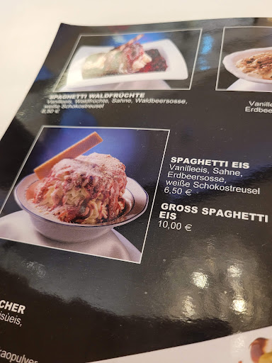 Read moreWir waren heute bei minini in wiesdorf. Wir warteten ca 3 Minuten bis die Bestellung aufgenommen wurde. Da es voll war, absolut okay. Es wurden 2x Spaghetti-Eis mit Erdbeeren bestellt für je 8,50 Euro. Das normale Spaghetti-Eis kostet 6,50 Euro. Es kam nicht wie auf dem Bild auf einem Glasteller mit einigen Erdbeeren, sondern in einer Hartplastik-Schale (vergleichbar mit dem Hartplastik Kindergeschirr) mit sage und Schreibe 6 dünnen Erdbeerscheiben. Man sah deutlich, dass es sich um maximal 2 aufgeschnitte Erdbeeren handeln konnte. 2 Euro Aufpreis für 2 in Scheiben geschnittene Erdbeeren? Andere Eiscafes nehmen diese Anzahl als reine Deko. Der Kellnerin die abkassierte, wurde das auch so mitgeteilt (auch wenn sie nicht gefragt hat, ob alles in Ordnung war). Sie sagte nur 3x ich verstehe und 1x ja, waren klein und nur 6 Scheiben. Keine weitere Erklärung oder Entschuldigung. Ebenfalls machte am Nachbartisch ein Mitarbeiter Pause, der in hoher Lautstärke sich Videos anschaute. Das Eis hat trotzdem ganz gut geschmeckt. Preis/Leistung stimmt hier überhaupt nicht. Wir werden jetzt definitiv andere...