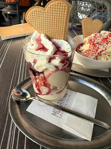 An ice cream shop that has Italian machinery at its disposal (Carpiggiani, Bologna) but which unfortunately uses ingredients and bases of very low quality. Very easy to note that the ice cream shop uses highly inexpensive products for the production of ice cream. This is a very sad company policy, to buy very poor raw materials and to pay for the ice cream produced at prices equal to a true authentic artisan product. Shameful, these are not Italian craftsmen! they are poor people who ran away from home, thieves. I can only imagine the employee payroll.