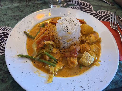Gutes afrikanisches Essen, nette Besitzer. Der hat uns mit seiner netten Art in den Laden "geschwatzt", es hat sich gelohnt. Aber natürlich macht er an allen Tischen die gleichen Witze und weiß bald nicht mehr, wem er was schon erzählt hat. Nach dem Essen gab's einen Schnaps oder Kaffee/Espresso aufs Haus. Beim Abkassieren wusste er nicht mehr, was wir bestellt hatten und wir konnten uns dem Gefühl nicht erwehren, er habe auch ein wenig dem Schnaps für die Gäste zugesprochen... Trotzdem nett. Das Essen war lecker, die Portionen groß genug. Auch vegetarische und glutenfrei war kein Problem. Leider mussten wir relativ lange warten, obwohl nicht sehr voll. Sie organisieren immer wieder Events im Restaurant, da wollen wir demnächst mal hin, mal sehen, wie sie das dann mit der Wartezeit organisiert bekommen. Draußen gibt es wohl auch einen Biergarten, da waren wir allerdings nicht, da Herbst...