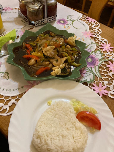Leider waren wir gar nicht zufrieden. Angefangen hat es damit. Wir hatten "reserviert" und sind dann nach innen gegangen. Auf einem Zettel an der Wand wurde uns dann irgendeine Nummer gezeigt, an dem wir uns dann setzen sollten (an dem Tisch stand aber ein komplett anderer Name. Wir haben uns dann wieder nach innen in die Wirtschaft gesetzt. Die Einrichtung ist nicht sehr einladend. Ein Teil ist so richtig "Wirtschaft" von früher alte Holzbänke etc. Darauf dann asiatische/Thailändische Kissen..... Und teilweise auch schon Spinnweben zu sehen. Der Herr der uns bediente wirkte sehr unfreundlich und hat kaum geredet. Nur das Nötigste und eher "pampig". Nach ca. 1 Stunde kamen dann endlich mal die Frühlingsrollen. Ca. 5 Minuten später kam die Dame aus der Küche und meinte, sie hätten keine Glasnudeln mehr. Das wäre ja kein Problem, nur ist das leider erst nach über 1Stunde Wartezeit aufgefallen..... Dann kam auch endlich mal das essen. Nach über 1 Stunde Wartezeit. Es war auch nicht viel los, was das ganze erklären würde. Im Essen befand sich dann TK und Dosengemüse und die Pommes waren nicht durch und die Frühlingsrollen eher verbrannt. Das Essen hat uns zum Teil enttäuschenderweise gar nicht geschmeckt. An einem anderen Tisch saß wohl der Inhaber (bin mir nicht sicher, aber hat auf jeden Fall dazugehört. Dort wurde nur Bier getrunken und lautstark gelacht und "gesprochen".