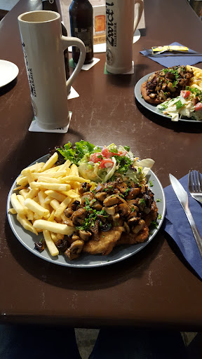 Wir sind hier an unserem Wochenende auf dem CP-Eurocamp eingekehrt. Eigentlich wollten wir nur "Currywurst und Pommes" doch schon am Telefon erfuhren wir, dass es dies hier (zur Zeit) nicht mehr gibt! Also haben wir die Karte durchforstet. Diese ist Prima und bietet allerlei Leckereien. Dennoch war uns die Auswahl aus (Standard)Fleisch Mahlzeiten nicht ganz nach unserem Geschmack. Es gab Geflügel, Fisch und Schnitzel.... Ja mit Schwein gab es nur Schnitzel. Zwar in sehr vielen Variationen aber keine Alternative. Vielleicht sollte man doch wenigstens noch einen tollen Burger oder sowas mit drauf nehmen für die Menschen die Ihr Fleisch nicht mit Panade umgeben haben möchten. Doch nach der Auswahl (vier Personen vier verschiedene Schnitzel) gab es ein tolles Essen! Die Portionen sind riesig und die Zutaten scheinbar frisch! Das Preis -Leistungsverhältnis ist angemessen. Die Servicekräfte sind zuvorkommend und geben auch gerne Auskunft wenn man Fragen hat. Für einen Burger dieser phantasievollen Küche kämen wir sicher noch...