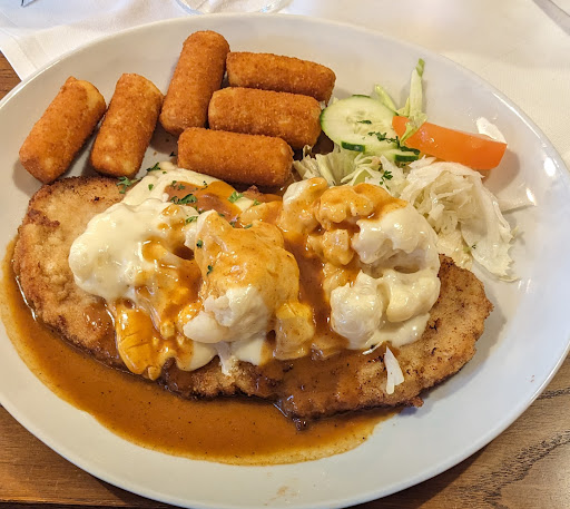 Read moreWir sind spontan eingekehrt und haben gegen 18 Uhr problemlos einen Tisch bekommen. Einrichtung nett, aber Raum etwas kühl. Genauso kühl war die ältere Dame, die uns bedient hat. Schon beim Hinsetzen hatten wir gefragt, ob Kartenzahlung möglich ist. Da wurde finster Geblickt und gesagt: "Wenn das Gerät funktioniert." Essen war schön warm und geschmacklich typisch deftige Hausmanskost. Schnitzel mit Pilzen, tollen Pommes und Rohkostsalat kann man dort essen. Leider kam zum Schluss nochmal ein großer Dämpfer. Trinkgeld mit Karte würde man nicht wollen, weil das Geld dann "die Falschen" kriegen. Dann wurde geschimpft, weil bei der Debitkarte angeblich 5% Gebühren anfallen. TIPP: nehmt genug Bargeld mit, dann erspart ihr euch und der Chefin viel...