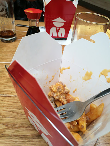 Jetzt der leider negative Rest: Das war's dann aber auch schon. Geschmacklich besser als Kette, aber keine Offenbarung. Viel entscheidender ist allerdings das schon mehrfach bemängelte Hygienekonzept (sofern man das überhaupt Hygiene nennen kann). Handschuhe wurden nicht gesehen. Dieselben Hände, die eben noch Bargeld in die Kasse getan haben, bereiten dann den Burger vor (Salatblatt in der hohlen Hand, restliches Gemüse oben drauf). Privates Handy wurde ebenso aus der Tasche gezogen (auch wenn nur zur Seite gelegt) ohne dass danach die Hände gereinigt wurden.