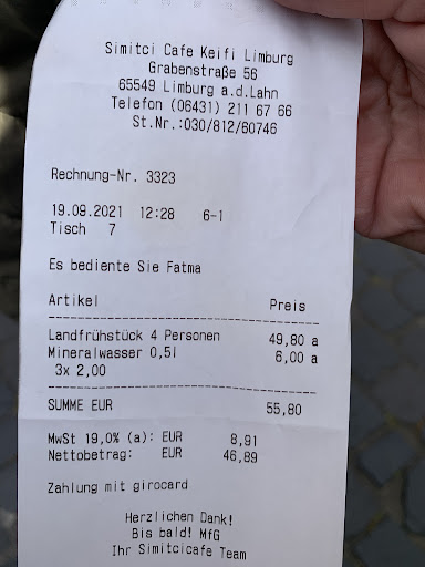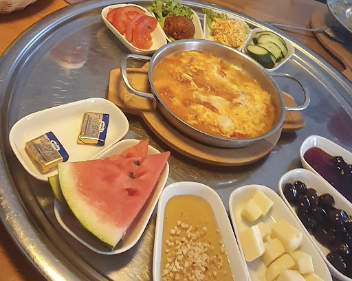 Read moreWir wollten zu viert gemütlich Frühstücken. Sind freundlich begrüßt worden und konnten an unseren bestellten Tisch .Das Ambiente gefiel uns gut und dann ,kam die Speisekarte. Es wurde jedem unaufgefordert ein Tee gebracht .Nett, dachten wir ,toller Service, doch der gehörte schon zum Frühstück dazu .🤔Leider gab es im Internet keine Preise. Hätten wir es vorher gewusst, wären wir sicherlich nicht gekommen. Denn...dieses Preisleistungsverhältnis passt gar nicht !!! Wir waren schon oft türkisch (anatolisch)Frühstücken, allerdings in Niedersachsen. Wer dieses Vergnügen noch nicht hatte,glaubt vielleicht es ist toll. Ok ,doch alleine für das kleine Tomatenrührei mit einem Simit für 13,50€,tut mir leid,dass passt gar nicht !!! Das Omlett für 13,50€ steht auch in keinem Verhältnis ! Dazu kommt das wir über eine Stunde warten mussten bis das Frühstück endlich kam und wir erneut ein Getränk bestellen mussten, naja ! Der Simit war gut und die Käsepaste auch. Der Stern ist für die Freundlichkeit und die nette Bemühung der Bedienung. Sie war ganz alleine und war sichtlich überfordert, schade . Wiederkommen werden wir nicht und weiterempfehlen können wir es...