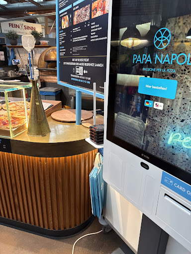 Papa Napoli ist ein SB-Restaurant im obersten Stock des Lindauparks. Reservierung nicht möglich, aber auch nicht notwendig. Bestellung & Bezahlung an der Theke. Über einen Pieper wird man benachrichtigt, wenn man das Essen holen kann. Mitarbeiter sind freundlich. Freie Platzwahl, z. B. direkt am Fenster mit super Ausblick. Wahlweise an Esstischen oder auf gepolsterten Palettenmöbeln.