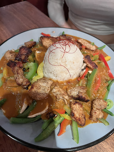 Komme immer wieder gerne hierher. Egal um nur etwas gemütlich zu trinken, eine Kleinigkeit zu essen oder den großen Hunger zu stillen. Freundliches Personal, leckere Gerichte. Die Einrichtung im Indonesischen Stil ist geschmackvoll. Nur ein Punkt stört mich jedes Mal: Es ist sehr laut im Lokal. Die Tische stehen relativ eng und es gibt keine Trennwände oder andere Dinge, die den Schall schlucken. Und da es immer echt voll ist, ist es dann halt auch laut.