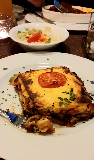 Das Gericht sah schon merkwürdig aus, als es serviert wurde, und genauso schmeckte es dann auch. Es ist nicht das erste Mal, dass wir irgendwo Metaxa-Gyros bestellt haben, aber so schlecht wie hier hat es uns noch nie geschmeckt. Ich finde, es hat auch gar nicht nach Metaxa geschmeckt, sondern nur nach irgend einer komischen Sauce. Bestellt hatte es meine Frau, die aß es nicht auf, also haben wir getauscht. Aber ich mochte das auch nicht aufessen.