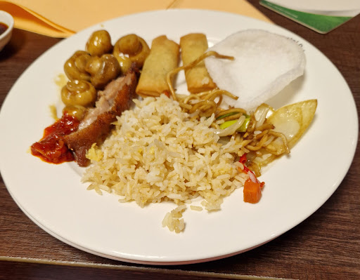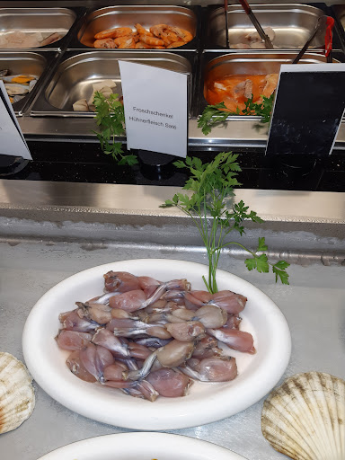Ich frage mich allen Ernstes, ob die ganzen positiven Rezensionen einen Gutschein dafür erhalten oder ob wir von unterschiedlichen Restaurants sprechen? Selten haben meine Familie u. ich so grottenschlecht gegessen wie heute. 1 Stern ist mir noch zu viel. Wir waren mit unseren drei Kids (15-17J.) dort. Es war kurz vor 20 Uhr. Das Restaurant war nicht besonders gut gefüllt. Nach dem Betreten standen wir 5 Minuten im Eingangsbereich bis uns dann eine Mitarbeiterin einen (schmutzigen) Tisch zuwies. Dieser wurde nicht mehr abgewischt, wobei der Schmutz deutlich zu sehen war. Sie fragte nach unseren Getränkewünschen und zog nach der "Bitte" nach einer Getränkekarte mit einem genervten Gesichtsausdruck ab. Wir konnten sie dabei beobachten wie sie längere Zeit im Schrank nach einer Karte suchte. Sie überreichte uns diese dann wieder sehr entnervt mit den Worten, dass die Preise dort nicht stimmen würden. Besteck u. Servietten wurden dann am Tischende hingeklatscht u. wir bedienten uns selbst daran. Die Bestellaufnahme der Getränke erfolgte in den nächsten 15 Minuten nicht, sodass wir uns eigenständig zum Buffet aufmachten. Auch hier suchten wir vergeblich nach der ach so reichhaltigen, großen Auswahl an FRISCHEN Speisen. Alles was sich uns bot, waren Reste von teilweise luftgetrockneten, harten Nudeln, pappigen Minifrühlingsrollen, lauwarmen Fleischgerichten bis hin zur traurigen unexotischem Gut & Günstig Salamipizza aus der Tiefkühltruhe die niemand anrühren wollte. Nachdem wir einen spärlichen Durchgang hinter uns hatten, dachten wir das zwischenzeitlich sicher die ein oder andere Speise nachgebracht wurde. Auch hier wurden wir wieder sehr enttäuscht. Ein Gericht mit Hähnchen in Currysauce wurde einfach mit einem kräftigen Schluck Wasser gestreckt u. die "gebratenen" Pilze waren roh und leicht aufgewärmt aus der Dose. Mein Sohn nahm sich vermeintliche frittierte Hühnchenteile mit u. stellte am Tisch fest, dass es sich fälschlicherweise um gebackene Bananen und Ananas handelte. Diese waren wohl falsch beschriftet. Auch andere Hähnchenteile bestanden nur aus einer ekelhaften Masse, die wie pures Fett aussah u. auch so schmeckte. Wir waren mittlerweile einfach nur noch angeekelt, von dem was wir uns auf dem Teller an den Tisch gebracht hatten. Teilw. geschmacklos, super fettig, kalt u. keinen Cent wert. Der erste Sohn meldete sich bereits mit Bauchschmerzen. Wir wollten uns zumindest noch von dem restlichen Buffett überzeugen und schauten uns die Desserts etc. an. Vertrocknete Tortenreste von C & W die mindestens schon 2-3 Tage in der Auslage standen. Schmierige, verdreckte Schokobrunnen u. leergekratzte Eisbehälter. Danke! Aber wir waren Pappsatt von dem was sich uns bot. Wir wollten nur noch unsere Getränke leeren, zahlen u. nach Hause. Wir konnten dann das Servicepersonal dabei beobachten, wie mit einem Lappen alles mögliche abgewischt wurde, ohne das er zwischendurch auch nur einmal ausgespült wurde. Danach wurde direkt das Besteck ( an der Zinken u Löffelspitzen ) mit den Händen angefasst. Es fiel Besteck zu Boden u. wurde direkt wieder auf den Tisch gelegt. Sehr unhygienisch. Als wir dann noch 142,70 € für 5 x Menü + 5 Getränke zahlen mussten, war für uns klar, dieses Etablissement sieht uns in diesem Leben niemals wieder. Die Servicekraft fragte nicht ob es uns geschmeckt hatte u. konnte dann anscheinend auch kein Kleingeld rauswechseln. So mussten wir auch noch unfreiwillig Trinkgeld zahlen, welches nach so unfreundlicher Bedienung u. miserablen Aufenthalt für uns nicht selbstverständlich war. Resultat 3 von 5 haben Bauchschmerzen. Nachtrag : Wir besuchen oft und gerne, gute und tolle Restaurants. Lassen uns gute Küche auch gerne ein paar Mark mehr kosten u. sind immer großzügig mit Lob u. Trinkgeld. Selten haben wir etwas zu meckern. Wir sind nicht pingelig u. regen uns auch nicht schnell über etwas auf. Wir haben auch Verständnis für die Arbeit, den Stress u. die Bedingungen in der Gastro. Die Summe der Enttäuschung an diesem Abend war für uns einfach zu viel, sodass man eben nicht mehr beide Augen...