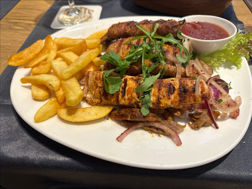 Leckere Gerichte: Die Speisekarte bietet eine Vielzahl von leckeren Gerichten, die frisch zubereitet werden. Von Gyros über Pizza bis hin zu griechischen Salaten - alles ist köstlich! Freundlicher Service: Das Personal ist freundlich und aufmerksam, sehr bemüht um die Gäste. Schöne Atmosphäre: Das Restaurant hat eine gemütliche Atmosphäre, die zum Verweilen einlädt.