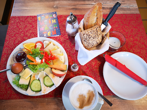 Waren unter der Woche zum Frühstück da, sassen draussen. Netter Service, das Käse- Frühstück war lecker, sehr liebevoll und mit frischen Früchten und Gemüse auch fürs Auge toll angerichtet. Leider keine frischen Brötchen - sondern aufgebackene...feiner Tee. Joghurt mit Früchten auch gut mit frischem Obst. Leider ist es draussen auf der Terrasse von allen Seiten Auto-befahren, auch mal ne Strassenbahn rattert direkt vorbei. Trotzdem ok und in Ermangelung von Alternativen in Linkenheim eine solide...