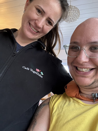 Waren heute zum Frühstücken in dem Café und waren leider vom Service sehr enttäuscht. Wir kamen pünktlich zu unserer Reservierung. Das Café war zu diesem Zeitpunkt noch nicht voll. Zu aller erst musste ich nach einem Putzlappen mit Seife fragen weil der Kinderstuhl sehr dreckig war. 30 Minuten später wurde unsere Bestellung aufgenommen. Allerdings erst nach mehrmaligem nachfragen weil nicht alle Servicekräfte die Bestellung im „Außenbereich“ aufnehmen konnten. Nochmals 30 min später kam das Frühstück und nach weiteren 5 min die bestellten Getränke! Eine Stunde nach unserer Ankunft konnten wir den ersten Kaffee trinken. Für das Kind gab es eine VollMILCHschokolade. Diese wurde mit Wasser zubereitet, kaum trinkbar. Auf Nachfrage war die Milch leer gegangen. Das Frühstück im allgemeinen war ok. Das dazu bestellte Croissant kam hart und verbrannt. Für den Preis fand ich den Teller recht spärlich, der Joghurt hatte eine krümelige Konsistenz und war nicht mein Geschmack. Eine Stunde nachdem das Frühstück kam, sind wir reingegangen zum bezahlen. Nicht einmal kam jemand, um zu fragen ob was fehlt, ob wir noch was trinken wollen usw. Es hieß es wären hundert Personen zum Frühstücken da, das Café sah aber auch beim Gehen nicht voll besetzt aus. Werden definitiv nicht wieder kommen.