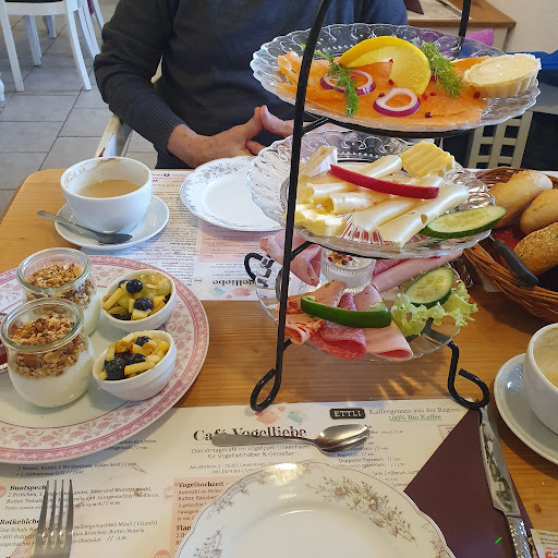Read moreMit hohen Erwartungen besuchten wir heute das Cafe Vogelliebe in Linkenheim. Das Cafe´sehr liebevoll eingerichtet macht einen tollen ersten Eindruck. Leider bekamen wir erst nach 25min die Speisekarte, nach weiteren 25min wurde unsere Bestellung aufgenommen. Der angrenzende Spielplatz machte es jedoch für unsere Kinder etwas leichter die Wartezeit zu überbrücken.Leider mußten wir um die Hände auf der Toilette waschen zu können den WC-Schlüssel bei der Bedienung holen. Wir waren uns unschlüssig ob einfach vergessen wurde das WC morgens aufzuschliessen oder ob es so gewollt war das man sich den Schlüssel besorgt. Leider waren auch die Papierhandtücher aus. Das Servicepersonal war sichtlich mit den vielen Gästen überfordert. Nach der Bestellung kam das Frühstück (+15min), leider fehlten die Getränke der Kinder. Daraufhin erinnert ich die Bedienung an die Milchshakes unserer Kinder, leider bekam ich nur zu Antwort: " Gemach, gemach, Sie sehen doch was hier los ist!." Wenn das Essen schon auf dem Tisch steht , sollte es drin sein die Getränke wenigstens mit dem Essen zu servieren (nach dieser Wartezeit). Leider fehlte die beschriebene Überraschung für die Kinder (hatten das Kükenfrühstück). Das Frühstück war sehr lecker, der Preis für 4Personen (2Kinder die je ein Nutellabrötchen hatten ) lag bei 42,10€ ohne Saft. Bezahlt habe ich am Tresen da ich weitere unnötige Wartezeit vermeiden wollte. Fazit Nettes Cafe´, schön für die Kinder mit viel Wartezeit. Denke wenn mehr Serviepersonal da gewesen wäre, wäre unser Sonntag anders...