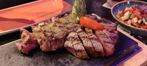 Das Highlight ist natürlich das Steak. Hier wird auf Qualität und Zubereitung großen Wert gelegt. Das Fleisch wird auf einem 800°C heißen Grill vorgegart und dann auf einem heißen Lavastein serviert, sodass jeder seinen gewünschten Garpunkt selbst bestimmen kann. Ein richtig gutes Konzept meiner Meinung nach! Ich hatte ein Ribeye-Steak Dry Aged und es war einfach perfekt – unglaublich zart, saftig und mit einem intensiven, aromatischen Geschmack.