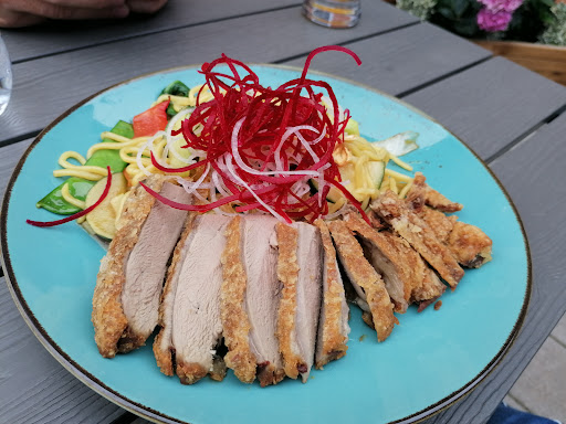 Sehr leckeres Essen. Schöne Sitzgelegenheiten auch draußen. Kleiner Spielplatz dabei. Große Auswahl an Essen. Auch Sushi. Service muss sich noch einspielen bzw das perfekte Personal gefunden werden. Sonst alles gut. Leider sind die Räumlichkeiten innen sehr hellhörig und laut. Das war aber in dem Gebäude schon immer so. Sonst sehr schön...