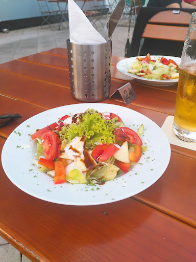 Geblendet von den vielen guten Bewertungen besuchten wir dieses Lokal. Nachdem wir nach unserer Ankunft, obwohl nicht viele Tische besetzt waren, erst ignoriert wurden und schon wieder kurz davor waren zu gehen, wurden wir dann doch noch bedient. Das Ambiente, das muss man zur Ehrenrettung des Ladens doch noch sagen, war echt schön mit dem neben der Terrasse vorbei rauschenden Strom und den vom Wind sanft bewegten Bäumen. Das Schnitzel war jämmerlich in der Friteuse ertränkt und auf einen Berg lascher, wabbeliger Pommes geworfen. Die dazu gereichte Majonaise verdient ihren Namen nicht, denn wie man eine solche geschmackslose weiße Pampe einkaufen kann, um sie seinen Gästen anzudrehen ist mir schleierhaft. Ebenso verhielt es sich mit dem Käsespätzle aus dem Backofen, anbei bemerkt sei, dass die Portionierung ausreichte, um als Vorspeise zu dienen. Schlussendlich waren es Speisen in Schnellimbiss-Qualität zu Restaurant-Preisen. Nur der Service war...