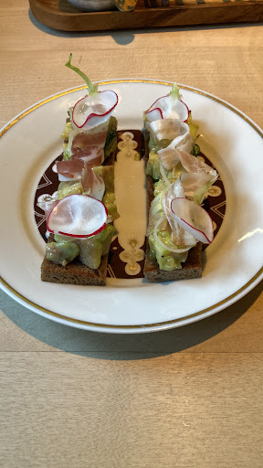 Read morePositiv: sehr freundliche und zuvorkommende Bedienung und Service. Hilfsbereit bei Behinderung mit Rollator. Positiv:49 Euro Überraschungsmenue, 3 Gänge, pro Person ist vordergründig nicht zuviel. Nur sollte dann wirklich eine Hauptspeise angeboten werden. Der Gruß aus der Küche, selbgebackenes Knäckebrot war trotz kleiner tomatenpaste sehr trocken.Das Rinder-Tartar als kleine Vorspeise war etwas hell und mit gerösteten weissbrot insgesamt fade aber noch gut. Dann als "Hauptspeise" ein handtellergrosses Rösti mit sehr scharfen kohlblättern und 2 pochierten Eiern garniert mit scharfer sauce. Asiatisch hieß es, viel zu scharf und für uns kaum genießbar. Unser direkter Hinweis auf diesen Umstand wurde mit dem Hinweis auf eine zusätzlich zahlungspflichtige Alternative auf der Speisekarte freundlich "abgebogen". Unsere Meinung hierzu: Eine Überraschung kann auch gelingen bei einer Komposition mit lachs oder Innereien oder hühnerfleisch, dann mitteleuropäisch geprägt. Ausserdem könnte auch eine andere Speise als Alternative im Preis inbegriffen angeboten werden, dann eben als Menge angemessen. Der Nachtisch:Eissorbet, geschmacklich außergewöhnlich gut, Aroma wundervoll, ebenso der winzige Käsekuchen mit aufgetauten tiefgefroren heidelbeeren sehr lecker. Satt waren wir nach dem Essen nicht, es fehlte die schmackhafte Hauptspeise. Insgesamt daher leider nicht überzeugend bei 111 Euro. Schade, denn die Bedienung war sehr nett und hilfsbereit, bis auf die...