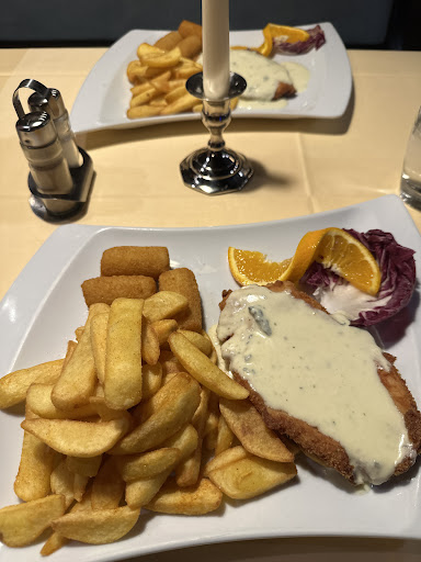 Zum wichtigsten: dem Essen.. Hier sind leider doch einige Defizite. So sind die Schnitzel leider Fertigschnitzel, die Bolognese-Soße der Spaghetti Bologna ist ebenfalls ein Fertigprodukt. Das die Nudeln nicht hausgemacht sind, ist in Ordnung, das erwartet man nur, wenn es extra dabeisteht. Der Parmesan schmeckt zwar ganz gut, aber irgendwie nicht so intensiv, wie man es von echtem Parmigiano Reggiano erwartet - ich kann es nicht beschwören, aber ich denke es ist ein günstigerer Hartkäse, ich vermute Grana Padano. Die Soßen zum Fleisch sind ebenfalls aus der Fertigpackung. Pizza ist etwas labbrig und schon von der kleineren Sorte, preislich aber im Rahmen.