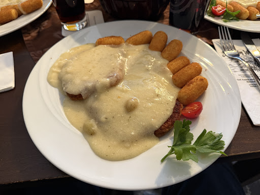 Read moreWe had such a great experience at this restaurant! They revived our faith in great German food in great German proportions at a fair price. After the previous night having a poor experience at Alte Haus in Bacharach, we felt like we got back on track with this restaurant. We were staying in Bacharach and got confused and worried about making the late car ferry, so we initially cancelled our reservation to the restaurant. When we realized it was probably going to work out, they took us back in and we had a meal fit for a king. I had the schnitzel with Riesling sauce, which was my favorite schnitzel of the whole trip. My wife had the Venison goulash and loved it. She was deciding between it and something else and the waiter recommended the venison because it was more in the season. Our wine was very good and the portions were great. The interior of the restaurant was very interesting. The food came out quick and hot and at the end of the night, we easily made the car ferry. This was definitely one of more memorable meals on our...