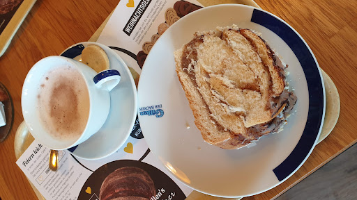 Read moreAn sich ein schönes großes Café, das man aufgrund der großen Platz Auswahl auch mit einer größeren Gruppe spontan besuchen kann... sollte man meinen. Waren nun schon mehrmals mit vier bis sechs Leuten dort, Café immer so gut wie leer (Max. 2 Tische besetzt oder auch gar keiner). Trotzdem mussten wir heute schon mehrfach von der ziemlich genervten Bedienung hören "ab 4 Leuten mind. 2 t vorher reservieren". Sorry aber machte gar keinen Sinn. Angeblich hätte sie sonst nicht genug gespültes Geschirr. Sie muss ja nicht mal bedienen, da man sich alles an der Theke selbst abholt. Warum hat man ein großes Café, mit vielen Sitzplätzen wenn anscheinend keine Gäste erwünscht sind? Was wird denn gemacht wenn zufällig 2/3 Pärchen einzeln rein kommen? Mit dem Essen und den Getränke waren wir jedes Mal zufrieden. Aber die Bedienung vergrault echt die Gäste. Nuschelt und schimpft auch immer irgendwas genervt vor sich hin und verdreht die Augen, wahrscheinlich kein Bock auf Arbeit. Schade, da wir es wirklich nie eilig hatten und sehr freundlich und geduldig ihr gegenüber waren. Der Inhaber:in sollte sich überlegen welches Personal er da hinstellt. Der junge Mann, der auch mal da...