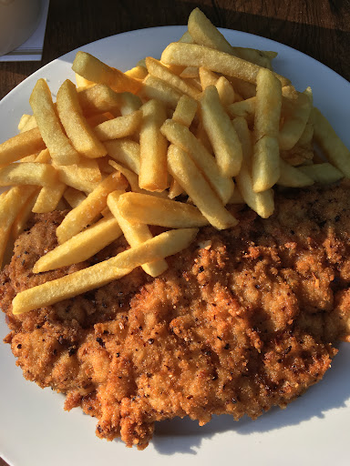 Read moreeigentlich nur 3 Sterne, weil das Frittieröl ziemlich alt war (Tagesfehler?), sonst könnten Pommes und Schnitzel deutlich besser sein. Es fehlte deutlich Salz, vielleicht nur ein Tagesfehler (?) - nachsalzen war nur erfolgreich, wenn man die leider zu dicke Panade entfernt hat. Ich vermute, das Fleisch wurde ungesalzen und ungepfeffert paniert. Der zugehörige Salat war gut, aber nicht lecker. Das verwendete Fleisch war recht gut, so dass hier ein Potential nach oben besteht, wenn man öfter mal das Öl wechselt. Die heute erlebten drei Bedienungen waren allesamt sehr sympathisch und freundlich und auf Zack, wir mussten nie lange warten, deswegen gebe ich hier knappe vier Sterne. Bitte arbeitet an den wichtigen Kleinigkeiten, manchmal kann man mit ein paar wenigen Handgriffen...