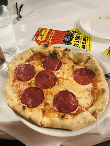 Table cloth was dirty and plate we got for bruschetta had some spots on it. Service was kind of slow but our server was nice. We ordered the bruschetta for appetizer, the bread was spongy and the topping didn’t have flavor. I also go a cube libre drink and the cola tasted flat. I got the salami pizza which was very good. My husband got the calzone he also said it was good expect for the mushrooms. My parents got the lasagne which took the longest to come, they said it was okay and had a tangy taste to it. Also some random boys came to our table to give us some flyers. Not once but twice. When you walk by the kitchen to go to the bathroom there was a smell. The restaurant was very...