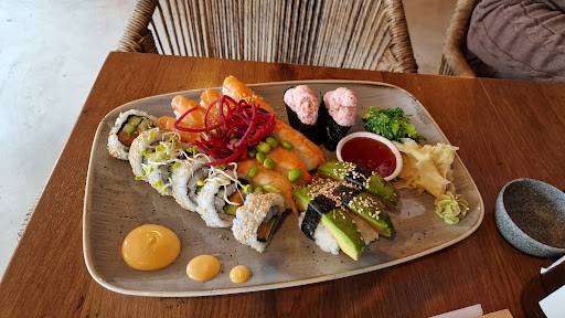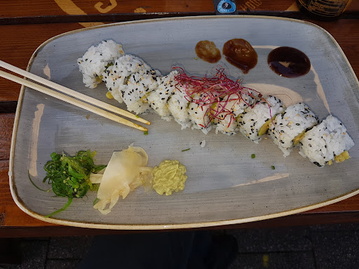 Read moreGreat sushi shop with quite a bit of seating space, we were a spontaneous party of +/- 10 people and there was enough seats to accommodate us, we had to move the tables around a bit, but it was no problem. There is self service and the orders are numbered. The food was good, we had teriyaki chicken, the California roll and the crispy roll. The rolls are big. There is complimentary vegetable soup in...