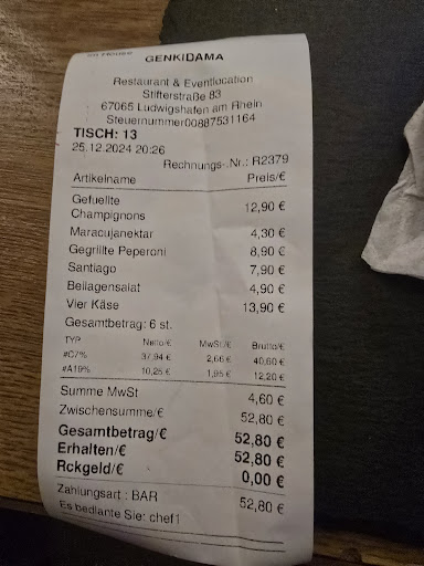 Read moreIch war heute mit meinem Mann zum ersten mal dort und haben unseren 2. Jahrestag gefeiert. Als erstes wurden wir sehr freundlich begrüßt am Eingang und zu unserem Platz begleitet. Die Inneneinrichtung ist sehr gemütlich, modern und sehr sauber. Dann haben kam die sehr Sympathische und freundliche Alice ( Bedienung/Partnerin vom Inhaber) und hat unsere Bestellung aufgenommen. Als Vorspeise hatten wir die gefüllten Championgs mit der leckersten Hollondaise Soße, die ich jemals gegessen habe. Als Hauptgang hatte ich die Manti und mein Mann den Texas Burger. Was auch unglaublich gut geschmeckt hat. Das Essen war immer sehr schön angerichtet und die Portionsgrößen waren sehr Ordentlich, sodas wir sie garnicht geschafft haben. sie haben es uns dann eingepackt zum mitnehmen. Dann haben wir noch zum Abschluss Majin Boos Chokcake bestellt der auch mega lecker war und aufs Haus haben wir noch ein Kokostartofu mit Nougatkern bekommen, was auch ein Traum war. Zu trinken hatten wir Cola und Mezzomix und noch 2 Coktails ein Sex on the Beach und Caipirinha, die auch sehr lecker geschmeckt haben. Das Preisleistungsverhältnis ist mehr als gut. Und wir haben noch einen Weinbergpfirsich Likör aufs Haus zum Schluss bekommen, der richtig gut war. Wir haben uns am Ende ,etwas mit dem Besitzer und seiner Partnerin sehr nett Unterhalten. Ein kleines highlight waren noch die Toiletten, nicht nur das sie sehr sauber und auch von außen sehr schön dekoriert sind, sondern das sie auch besser bestückt sind als jerder Drogeriemarkt. Es standen verschiedene Parfüms, Handcreme, Wattepads, Haarspray uvm zur Verfügung. Rundum war es ein sehr schöner Abend und ich möchte mich auch nochmal bei den Beiden dafür bedanken, Es ist ein sehr schönes Restaurant mit super Ambiente und sehr Sympatischen Gastgebern,sehr zu empfehlen. Lg...