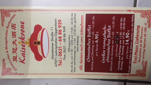 Read moreDie Kaiserkrone in Ludwigshafen Oggersheim ist gemütlich eingerichtet ma fühlt sich gleich sehr wohl man kann dort sehr gut essen bis auf wenige Ausnahmen.Leider gibt es hier doch ein kleines Manko in der Herren an der Toilettentüre im Bereich der des stillen Örtchen ist der Knauf zum abschließen abgesenkt das sollte man ändern ansonsten gab es nicht wirklich was aus zu setzen, aber alles andere war sehr gut und werde gerne auch wieder zum Buffet kommen da es auch in der näheren Umgebung ist
