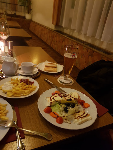 Das Restaurant Zur Linde bietet ein ziemlich altmodisches Flair, Stühle, Bänke, Tische, Lampen, Vorhänge - alles wirkt so als könnte es locker 25 oder auch 40 Jahre alt sein, jedoch ist auch alles sehr gepflegt und sauber. Die Auswahl an vegetarischen Gerichten lässt leider etwas zu wünschen übrig, jedoch konnte ich mir dann schon noch einen gegrillten Schafskäse aussuchen und dazu Pommes bestellen. Die Portion Pommes war wirklich sehr groß! 😃 Dazu gab es 2 Toasts als kostenlose Beigabe. Meine Freundin hatte ein Hacksteak mit Feta bestellt und auch ihr Essen war sehr lecker und sie bekam eine großzügig große Portion.
