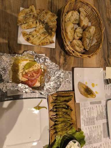 Ich hatte die gegrillten Peperoni etwas dunkler bestellt und exakt wie gewünscht bekommen, der "gegrillte Schafskäse" war zwar für meinen Geschmack deutlich zu wenig gegrillt, dafür aber trotzdem geschmacklich top, habe ich oft genug anders erlebt. (Werde ich nächstes mal dunkler bestellen und bin zuversichtlich, dass dann genauso wie die Peperoni auch zu bekommen, der Service dort ist zuvorkommend und freundlich.) Dazu Pita-Brot und Knoblauchbrot, beides war knusprig, frisch und gut gewürzt, auch das Standard-Beilagenbrot war schön gegrillt und ebenfalls leicht gewürzt, köstlich! Als Hauptspeise hatte ich die pikante Bauernwurst, ein Soutzoukaki, sowie ein Bifteki Gemisto, alle drei waren schön scharf angegrillt und sehr sehr lecker, hat mich direkt an unseren Kreta-Urlaub erinnert.