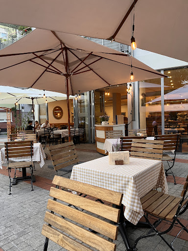 Ich weiß nicht wie die 5 Sterne Bewertungen zustandekommen, aber für mich war der Besuch eine reinste Katastrophe. Wir hatten einen Tisch für 18 Uhr bestellt, das war kein Problem. Der Aussenbeteich war gut besucht, unsere Bestellungen für 3 Personen wurden um 18:22 Uhr aufgenommen, bis auf die Tatsache das kein Weißwein mehr vorhanden war, war alles kein Problem, aber dann passsierte erst einmal gar nichts mehr. Gegen 18:50 Uhr haben wir dann unsere Getränke erhalten und genau 1h nach dem wir unsere Bestellung aufgegeben haben, haben wir endlich unsere Vorspeisen bekommen, ohne Teller und Besteck. Kurz darauf haben wir dann auch das Besteck und die Teller erhalten.