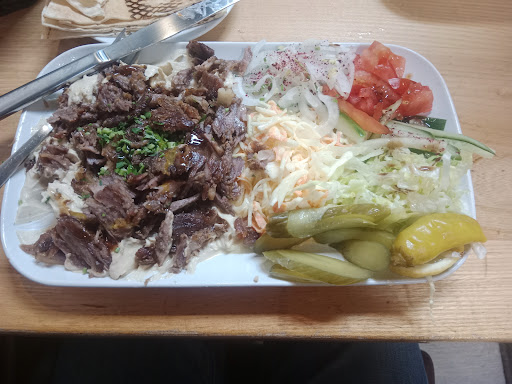 Read moreIch (Türke) war heut mit meiner Frau und meinen zwei kleinen Töchtern dort. Die Bedienung konnte kein Deutsch und hat nicht verstanden was wir wollten. Ich habe gemerkt das arabisch sprechende Kunden, die nach uns kamen, schneller ihre Bestellung bekamen als wir. Bestellung kam falsch an. Ich wollte für meine Töchter nur eine Portion halbes Hänchen mit Pommes ohne Beilage. Es kamen zwei Portionen. Die Pommes waren in Knoblauchjoghurt getränkt und anstatt halbes Hänchen mariniert fritierte Hänchenteile ala KFC style und Krautsalat. Habs nicht zurückgeschickt weil in meiner Kultur sich das nicht gehört. Und die Kinder haben nur zaghaft probiert. Ich weiß nicht was für ein Gaumen die Araber haben, aber meine Schawarma und das Lammfleisch meiner Frau waren total ungenießbar. Irgendwelche Zutaten ( villeicht fenchel oder anis, keine Ahnung) waren beigemischt, meine Frau war danach echt übel. Ich hab gedacht, schmeckt villeicht wie Döner, aber absolut nicht. Als Brot bekam man abgepackte arabische Lavasch anstatt selbsgebackenes warmes Brot. An den Nachbartischen lag noch Minutenlang das Essen auf den Tischen und die Tauben haben sich drangemacht. Unestetisch und störend weil sie laufend um die Tische geflattert sind. Anstatt es abzuräumen, zündet die Bedienung eine Zigarette an und beobachtet das Ganze. Über die Hälfte auf den Tellern liegengelassen und die Bedienung fragt obs gut geschmeckt hat 🙄 FAZIT: Für unseren Geschmack absolut nicht empfehlenswert. Weder Ambiente noch das Essen noch die Bedienung. Ein Stern ist da noch zuviel. Lieber ein paar meter weiterlaufen und am Berliner Platz...