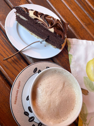 Great hospitality, quick service and numerous and delicious cake options available! There is also a possibility to sit inside but I personally recommend sitting outside specially when it’s not too crowded. The bathrooms were kept very clean too! Overall, the service was great and the staff was super kind!