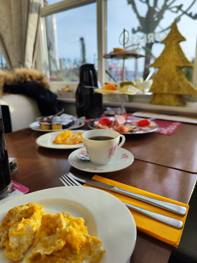 Die Sitzplätze sind zu eng und extrem platzsparend nebeneinander aufgestellt, sodass man kaum bequem und nicht grade diskret sitzen kann. Obwohl das Café kaum mit Gästen befüllt war, wurden alle gebeten, auf die Veranda oder nebenan zu sitzen. Auch unser älteres Geburtstagskind mit dem Rollator musste sich da reinquetschen. Die Tischdekoration aus Plastik ist sichtbar fleckig und staubig gewesen. Der Salzstreuer usw. war auch lange nicht geputzt worden. Als der Kellner mir meine Krabbensuppe unerwartet mit einer Sahnehaube brachte, konnte er mit meiner Irritation nicht umgehen und hat angefangen mit mir zu diskutieren. Er meinte, dass ich bei der Bestellung hätte darauf hinweisen müssen, dass ich keine Sahne haben wollte. Objektiv gesehen kann ich bei mir keinen Fehler entdecken, da auf der Speisekarte stand und immer noch steht „...18 – Tomatensuppe mit Sahnehaube..., 22 – Krabbensuppe, 23 - Erbsensuppe mit Würstchen...“. Also, logischerweise kann man nicht erwarten, eine Sahnehaube auf der Krabbensuppe platziert zu kriegen. Aber selbst, wenn es so wäre, dass ich mich geirrt hätte, hätte der Kellner hilfsbereit reagieren und schnell die Haube in der Küche entfernen können. Stattdessen zeigte er weiter seine Unzufriedenheit, als ich ihn darum gebeten habe, mir irgendeinen Behälter zu bringen, damit ich die Schlagsahne entfernen kann. Erstaunlicherweise brachte er mir dann von dem Nachbartisch eine ausgetrunkene Kaffeetasse und stellte sie entschlossen auf der Tischmitte ab. So hat er mich einfach sprachlos gemacht. Nach meinem Protest entfernte er stöhnend die dreckige Tasse. Ich konnte auch hören, wie er sich umgehend über mich beschwerte. Als er mir später einen Teller brachte, hatte ich die Schlagsahne bereits entfernt (bevor sie schmolz). Es kam niemand, der sich bei uns entschuldigte oder irgendein nettes Angebot gemacht. Die Krabbensuppe war aber richtig schön konzipiert und zubereitet. Sie konnte ich sehr gut genießen und weiterempfehlen. Dafür Dankeschön! Besonders bitter und problematisch finde ich die Tatsache, dass es in den WCs keinen Haltegriff gibt, obwohl das Café nicht auf die jüngere Generation gerichtet ist. So musste ich gestern in der WC-Kabine assistieren, um unseren älteren Geburtstagskind in schwieriger Situation zu unterstützen. Man kann doch mit älteren Menschen würdevoller umgehen, der Haltegriff kosten doch kaum was! Eines der beiden WCs (rechts) war gestern verstopft. Die Sauberkeit ist auch...