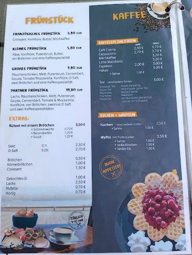 Das Essen ist das Herzstück des Cafés. Die Karte bietet eine große Auswahl an Speisen und Getränken.