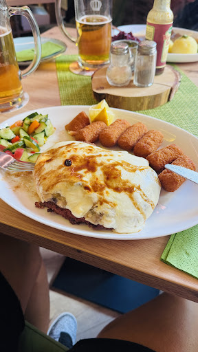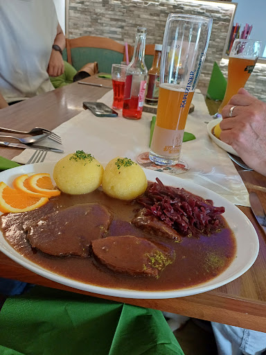 Wir waren im Dezember 2024 zweimal hier zum Mittagessen. Das junge Team ist sehr,sehr gästeorientiert, was per se heutzutage nicht mehr selbstverständlich ist. Allein dafür gebührt Ihnen Dank. Es war wohltuend. Aber zum Wichtigsten, zum Essen. Pferdesauerbraten, Schnitzel mit Spiegelei, Steak Strindberg und Grillplatte war unser Essen an diesen heiden Tagen. Beilagen frei wählbar, Pommes, Kartoffeln, Wickelklöse, Kartoffelklöse etc. Gemüse ebenfalls wählbar, wird auch vom Chef je nach gewünschten Essen empfohlen. Sosse wird im Kännchen auf Wunsch ebenfalls extra auf den Tisch gestellt. Alle Portionen reichlich, hier stimmt das Preis Leistungsverhältnis bei jedem Essen. Was übrig bleibt wird gern für zu Hause eingepackt. Strindberg: sehr lecker, sehr authentisch Schnitzel: saftig, dünne Pannade,sehr lecker Pferdesauerbraten: drei grosse,zwei kleine Scheiben, sehr gute Sosse, nicht zu aufdringlich im Geschmack, Fleisch nicht zu zäh oder auch nicht zu zerkocht. Superlecker Beilagen: Bratkartoffeln frisch gemacht; Kartoffeln in Spalten geschnitten, genau richtig durchgekocht; Wickelklöse in Ordnung; Kartoffelklöse komplett selbst gemacht,superlecker,perfekt gekocht; Mischgemüse perfekter Garpunkt und in brauner Butter serviert, spitzenmässig; frischer Salat komplett frisch geschnitten, supersaftig. Alles in allem zwei rundum gelungene Restaurantbesuche. Vielen...