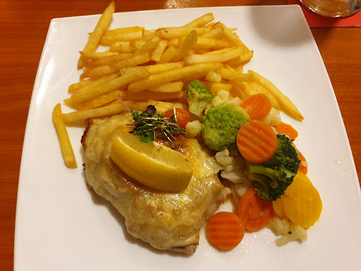 Read moreLage ist so lala, Parkplätze sind ausreichend vorhanden wenn man einmal die Zufahrt gefunden hat. Der Gastraum ist übersichtlich, gemütlich und nett dekoriert, nicht überladen. Die Tische stehen etwas eng, der Kinderwagen musste draußen bleiben. Das Essen war gut mehr aber auch nicht. Würzfleisch war wie meist auch Dosenware. Die "Waldpilze" schienen mir nur champignons zu sein. Die Wickelklöße waren nicht mein Fall. Der Eiskaffee schmeckte sehr nach Anrührware, leider kein richtiger kalter Kaffee. Die obligatorische Sprühsahne war auch vorhanden🙇 Als war gut essbar, machte satt. Der Genuss jedoch fehlte. Auf der Homepage wurde "kreativ frische Küche" versprochen aber für meinen Geschmack nicht gehalten. Leider zu viele negative Punkte um ein gut zu...