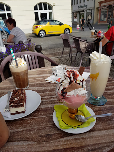 Read moreDa ich schon lange nicht mehr in Eisleben auf dem Markt war, war ich überrascht, dass aus Café Madeira - Café Oneiro geworden ist. Die Bedienung war nett und recht flink unterwegs. Mein Partner hat in der Schwarzwälder Kirschtorte das Kirschwasser vermisst, sonst war der Kuchen aber gut. Den Eiskaffee hat er gelobt. Mein Vanillemilchshake war auch lecker. Der Yogurette Eisbecher war ok, eine Kugel Eis hat jedoch im Becher gefehlt. Wenn wir mal wieder in der Nähe sind, kommen wir gerne noch mal auf einen...