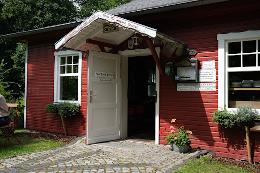 Schon witzig. In Berlin beschweren sich immer alle über die stillosen 4,90€ Cocktail-Happy-Hours und 1387 Gerichte auf der Speisekarte. Da tritt diesem Konzept jott-weh-de mal einer couragiert entgegen und überlebt damit auch noch über Jahre, muss man diesem meiner Meinung nach höchsten Respekt aussprechen. Von der unfreundlichen Bedienung habe ich nichts mitbekommen, da der Laden nämlich angenehmerweise die Selbstbedienung feiert. D.h. kein ewiges Ausgeliefert sein durch am Tisch Warten oder andernfalls penetrantes Stören des überengagierten Kellners (okeh, vielleicht in Brandenburg wirklich eher selten), sondern einfach mal die Beine in die Hand nehmen und sich selbst die Leckereien an den Tisch ziehen. Und Leckereien finde ich, ist keinesfalls weit hergeholt. Vielleicht hat der Wirt zwischenzeitlich gewechselt, aber wir hatten Glück. Kleine Karte bedeutet für mich immer: Danke lieber Wirt, du hast dir schon mal Gedanken gemacht, um mir Entscheidungen auf gelungene Weise abzunehmen. Keinerlei Entscheidungsschwierigkeiten, sofern man nicht 7,5 Jahre alt ist und Hamburger Schnitzel erwartet. Denn hier gibt es nur Fisch. Wer die Mühle kennt, weiß das aber und weicht mit Kind und Kegel eben eher auf das nächstgelegene Hamburger-Schnitzel-Standard-Restaurant in Buckow aus. Weiß man nicht? Erst googeln, dann meckern. Champagnerauswahl? Chapeau! Ob Kuchen, lokaler Raubfisch oder lecker selbstgemachter Kohlsalat (z.B. rot fein mit etwas Biss und Zimt abgeschmeckt) und der selbstgemachten Meerrettichbutter für den Fisch - wie gesagt, ich hatte nichts zu meckern. Haben uns danach noch ein Stück Champagnertorte und Mohrnkuchen gegönnt - lecker, wenngleich der Mohnkuchen etwas trocken war - war aber nicht schlimm, denn vom Original-Silberlöffel isst es sich irgendwie trotzdem gut weg. Fischbesteck übrigens auch aus echtem Silber mit Fischverzierungen. Liebe zum Detail. Punkt. Womit wir beim Interieur wären: Hier scheint alles in den 20er/30er Jahren stehen geblieben zu sein, aber liebevoll und gepflegt, was zu den weißen Tischdecken, den tollen Holzstühlen im Innenraum sowie dem gepflegten Garten mit alten hübsch rotbraunen Holz-Terrassenmöbeln im Außenbereich passt. Hier hat sich wirklich jemand Gedanken gemacht, inkl. der zum zeitlichen Backflash passenden Musikuntermalung im Hintergrund. Also mir hats echt gefallen. Chin-Chin Schampus und Dillkartoffeln!...