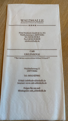 Das Waldhallencafe zeichnet sich einzig durch die tolle Lage aus. Das Potential dieses Stadortes ist umso größer, da es hier schon grundsätzlich strafbar unterboten wird. Die vom Landmetzger bereitete Wildbratwurst, auf der Karte Spezialität des Hauses, wird entweder durch einen furios scheiternden Koch oder durch den Landmetzger, der sich nur Landmetzger nennt, da er noch nie in der Stadt gearbeitet hat in die übersalzene Unkenntlichkeit gastronomischen Könnens katapultiert.