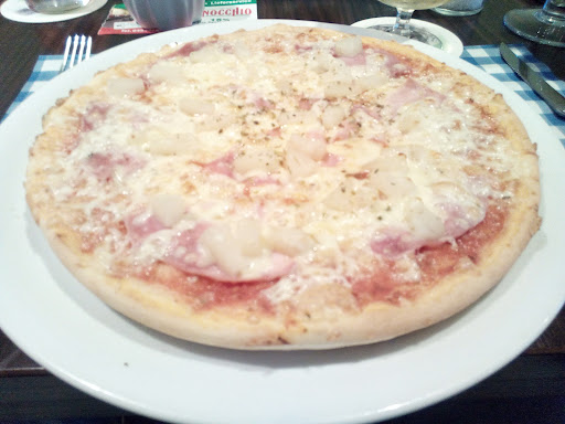 Gegessen haben wir eine Pizza und Salltimbocca. Bei dem Sonderwunsch zur Pizza gab es keine Probleme. Der Boden war luftig locker, geht eher in die Richtung American-Pizza. Ich mag lieber einen krossen, klassischen Pizzaboden ... also nicht ganz mein Fall (3 Sterne). Belag war Frisch und hat geschmeckt. Das Saltimbocca war von Fleisch her gut ... aber die Sauce war unserer Meinung nach zu dominant (weiße Chardonay-Sauce) und ließ den Geschmack des Fleisches, Schinken und Salbei untergehen. Wir haben den Kellner darauf angesprochen und er meinte, dass dies nicht die klassische italienische Art sei, aber die meisten Kunden dies so möchten. Nun gut, uns hätte es mit einer Buttersauce, die den Geschmack des Fleisches unterstreicht statt überdeckt, besser geschmeckt (2...
