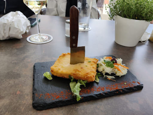 Read moreVom Ambiente her ist es gemütlich mit einem großen - zum Teil überdachten Terrasse. Hier kann man schön sitzen. Der Service ließ leider zu wünschen übrig - den ganzen Abend nur 1 Getränk für jeden da der Service dies nicht im Blick hatte mal nachzufragen ob man noch was möchte. Wir wollten nachbestellen aber haben irgendwie niemanden zu greifen bekommen. Das Essen - Bauernspieß mit gegrillten Peperoni und Tomaten - war etwas lächerlich - sorry. Die Peperoni zwischen dem gegrillten Fleisch musste man suchen und die gegrillte Tomate war je 1/4 Stck gegrillte Tomate. Das Fleisch war sehr trocken - auch bei meinen Begleitern - ich bestellte mir Tsatziki nach, bekam ein kleines - wirklich kleines Schälchen - welches auf der Rechnung mit 6 Euro !!!!!! WHAT!!!!! berechnet wurde. Das ist schon unverschämt. Die Pommes waren wie abgezählt - kurzum: hier werden wir nicht...