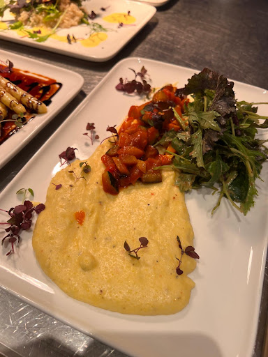 Die Polenta war unglaublich cremig und perfekt gewürzt, begleitet von einem frischen, knackigen Salat und einem herrlichen Gemüse-Ragout.