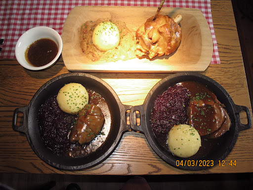 Wir waren mit ca. 20 Leuten dort und haben einen Geburtstag gefeiert. Zuerst zum Essen: Ich hatte eine Haxe bestellt, die Serviettenknödel und das Sauerkraut waren gut, die Haxe leider maximal trocken. Da konnte enttäuschenderweise auch die Sauce nichts mehr retten. Alle anderen waren wohl mit dem Essen zufrieden (hatten auch keine Haxe), fanden die Preise aber auch deutlich zu hoch für sowohl die Portionsgröße als auch die Qualität.