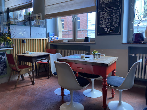 Hübsches kleines Café in renoviertem Gründerzeithaus am Adenauerplatz. In Mönchengladbach ist die Dichte schöner Cafés nicht besonders hoch. Umso mehr freut man sich über dieses hübsche Café am Adenauerplatz, wenige Minuten von der Haupteinkaufsstraße entfernt. Das Personal ist sehr freundlich, die Atmosphäre gemütlich, was auch am netten Geschirr liegt. Allzu viele Sitzplätze gibt es nicht, aber man sitzt sehr bequem in ruhiger Umgebung. Wir hatten Himbeerkuchen mit Mandelboden, der exzellent war, dazu Milchkaffee und Latte Macchiato. Der Schokokuchen sah ebenfalls gut aus, passte aber leider nicht mehr rein. Der Kaffee war zwar recht heiß, aber nach meinem Geschmack noch nicht zu heiß. Das Frühstücksangebot sieht vielversprechend aus, das wird als Nächstes probiert. Sicherlich sitzt man im Sommer draußen auch sehr schön. Insgesamt ein schöner Nachmittag, es wird nicht der letzte Besuch gewesen sein!